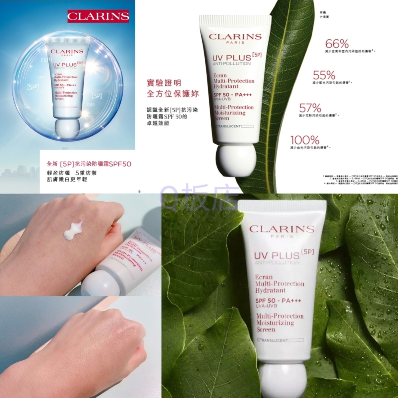 CLARINS [5P] 抗污染防曬霜SPF 50 PA+++,輕盈乳霜質地,彷如妳每日的肌膚防護盾, 加入革命性[5P] 抗污染科研配方,除擁有高倍防曬力,更可全方位5重防禦,有效隔絕空氣污染、藍光、光污染、甲醛、花粉等5大肌膚污染,內含極高抗氧力的有機芒果葉萃取,可激增肌膚防護力64%, 90% 女性認同使用後不再出現色斑,真正全面抗UV 、抗污染、抗老化,肌膚嫩白更年輕 。