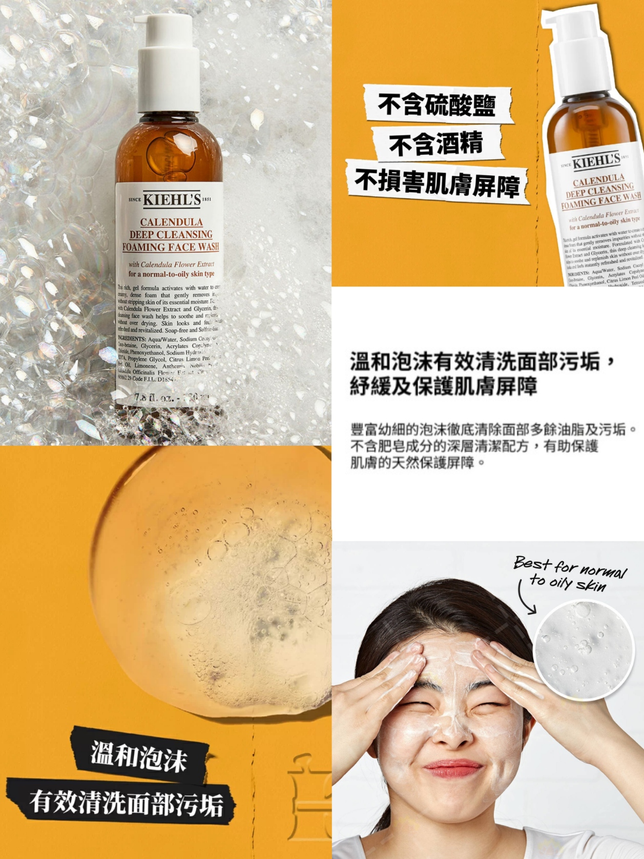1套4支120ml🤩 豐富幼細的泡沫徹底清除面部多餘油脂及污垢。 不含肥皂成分的深層清潔配方,有助保護肌膚的天然保護屏幕。 ✅️絲滑泡沫:遇水產生綿密泡沫,輕柔洗走污垢。不含肥皂配方溫和,呵護柔嫩肌膚。 ✅️潔淨控油:金盞花成分能溫和保濕,並均衡調理肌膚的油脂,有效舒緩出油過多的問題。 ✅️修護暗瘡:有助於暗瘡疤痕的癒合,特別適合受到暗瘡困擾的混合性肌膚。 使用方法: - 取適量於掌心,加水形成泡沫並以向上打圈的方式清潔面部,再以清水沖洗。 - 避免接觸眼睛。 【🌼治癒一刻 由潔面開始👐🏻】 洗完面最怕皮膚乾燥繃緊,皇牌#金盞花深層潔面泡沬 🌼性質溫和,綿密細緻泡沫有效帶走面部油脂污垢,兼呵護肌膚嘅天然保護屏障,洗后面部清爽清新,連暗粒都少d ar😉加上🌼金盞花療癒嘅香氣,為你肌膚帶來清新潔淨嘅治癒享受😌。 Exp: 27年