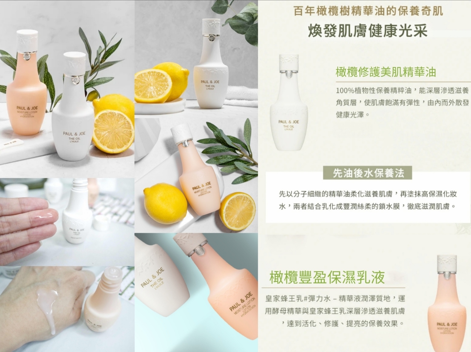 有乾紋、脫妝、鼻翼脫皮、肌膚容易敏感問題,可以試下用PAUL & JOE推出的橄欖護膚系列👊,以百年老樹橄欖油為基調,將地中海地區的豐富美肌養份帶到每日的護膚程序上!這系列最特別之處是利用獨有的‘’先油後水乳‘’慨念,為肌膚提供 5倍滋潤補濕,長效滋潤肌膚,讓肌膚很快便回復穩定狀態,肌膚看起來水潤有光澤✨️!