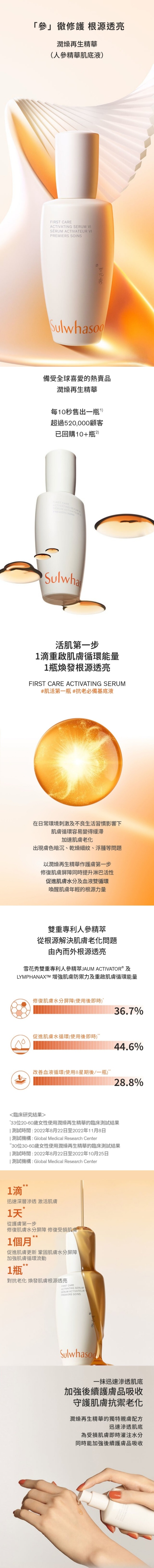 結合5種珍稀植萃及天然熟成淬鍊的頂級4年生人蔘,幫助啟動肌膚修復~蘊藏大地能量的人蔘,雪花秀對「人蔘」進行超越半世紀的探索與研究透過現代創新科技將人蔘修復能量運用至新一代潤燥養膚精華!
