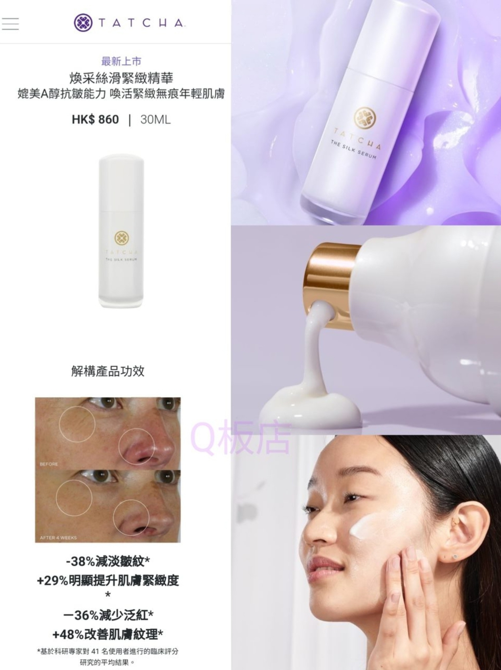 專柜價$860/30ml❌ 煥采絲滑緊緻精華的高效的抗皺配方,媲美A醇 (Retinol 視黃醇) 抗皺能力,更比A醇親膚,有效擊退皺紋同時舒緩肌膚、提升光澤、補充流失的膠原蛋白、保濕滋養同時改善泛紅。 ✅️減淡皺紋 ✅️改善緊緻度 ✅️均勻膚色+改善膚質 ✅️提升肌膚光澤 ✅️保濕滋養 ✅️減少泛紅 ✅️適合所有皮膚類型 🔴臨床結果🔴 〰️使用兩週後〰️ 100% 明顯改善肌膚紋理 + 減少泛紅* 〰️使用四週後〰️ 85% 明顯改善細紋 + 皺紋* 78% 明顯提升肌膚緊緻度* * 基於對COL1A1、COL3A1 和 ELN生物標誌物的體外測試。 建議用法: 在日常面部清潔後,於乾燥的皮膚上以1至2泵份量來回按摩。 開始時可先早晚各使用一次。 TATCHA皇牌精華🤩必要試用la,又係極少有佢d體驗裝,搶! 匠心純淨尊貴護膚品牌 Tatcha ,傳承百年日本🇯🇵經典護膚之道,推出全新革命性高效抗皺配方「煥采絲滑緊緻精華 THE SILK SERUM」抗皺能力媲美A醇(Retinol 視黃醇),猶如肌膚的皺紋熨斗😍。精華質感如絲綢般奢華幼滑,當中的高效抗皺雙重植物萃取蘊含升級再造小紅莓提取物及海苘香 ,替代不少敏感肌膚都難以承受的A醇成分,溫和且高效地為肌膚補充源源不絕的膠原蛋白,有效減淡皺紋及改善肌膚緊緻度,科研實證有效減淡38%皺紋,為肌膚補水💧的同時舒緩因刺激而引起的泛紅,帶來如絲綢一般緊緻亮澤的肌膚質感💓 。 Exp: 27年